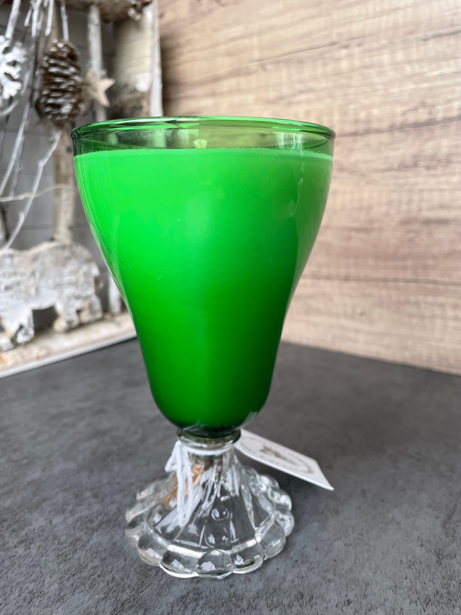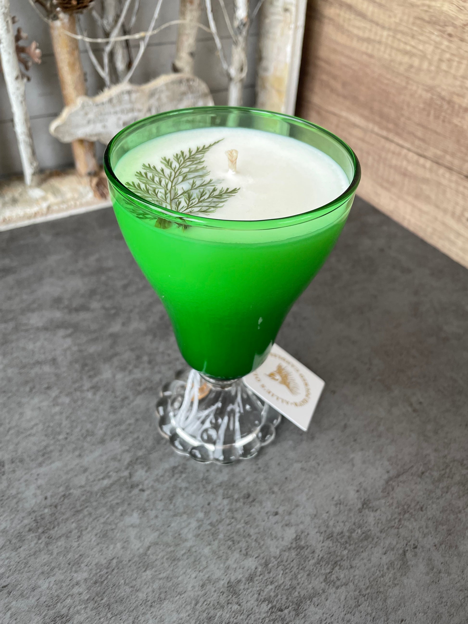 This stunning vintage glass chalice is filled with our classic Fraser Fir scent and adorned with dried greenery and pinecone pieces.
