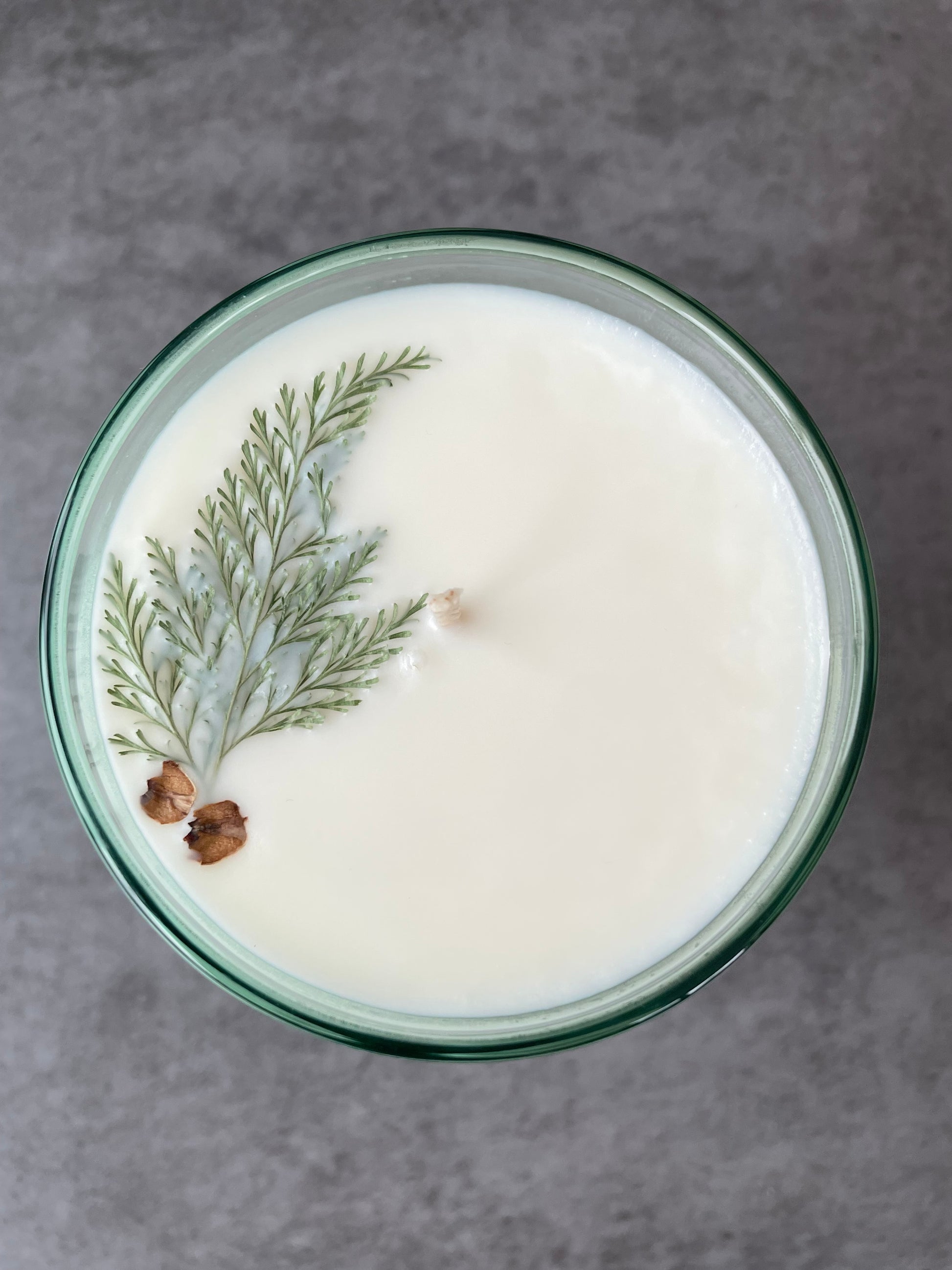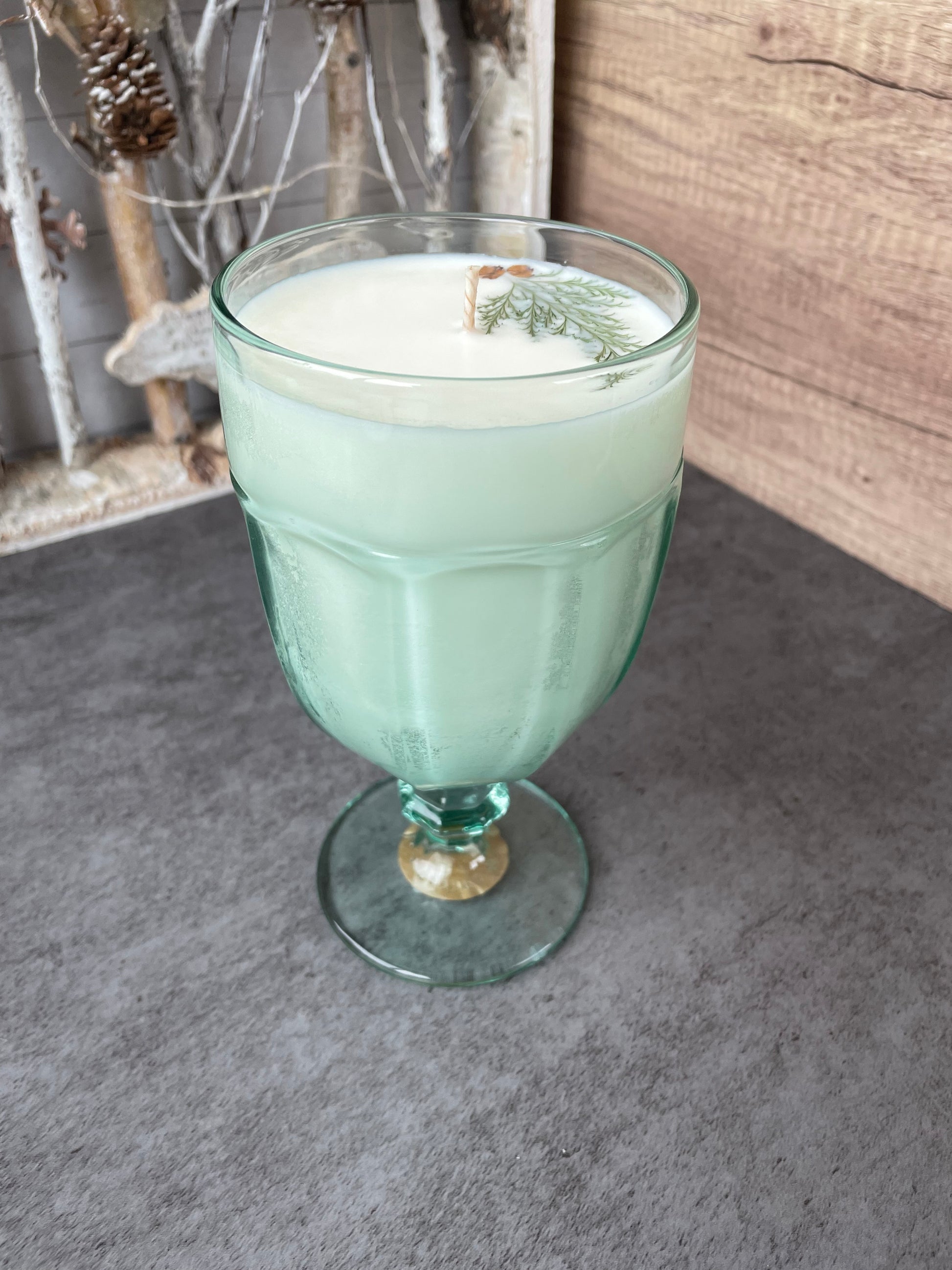 This stunning vintage glass chalice is filled with our classic Fraser Fir scent and adorned with dried greenery and pinecone pieces.
