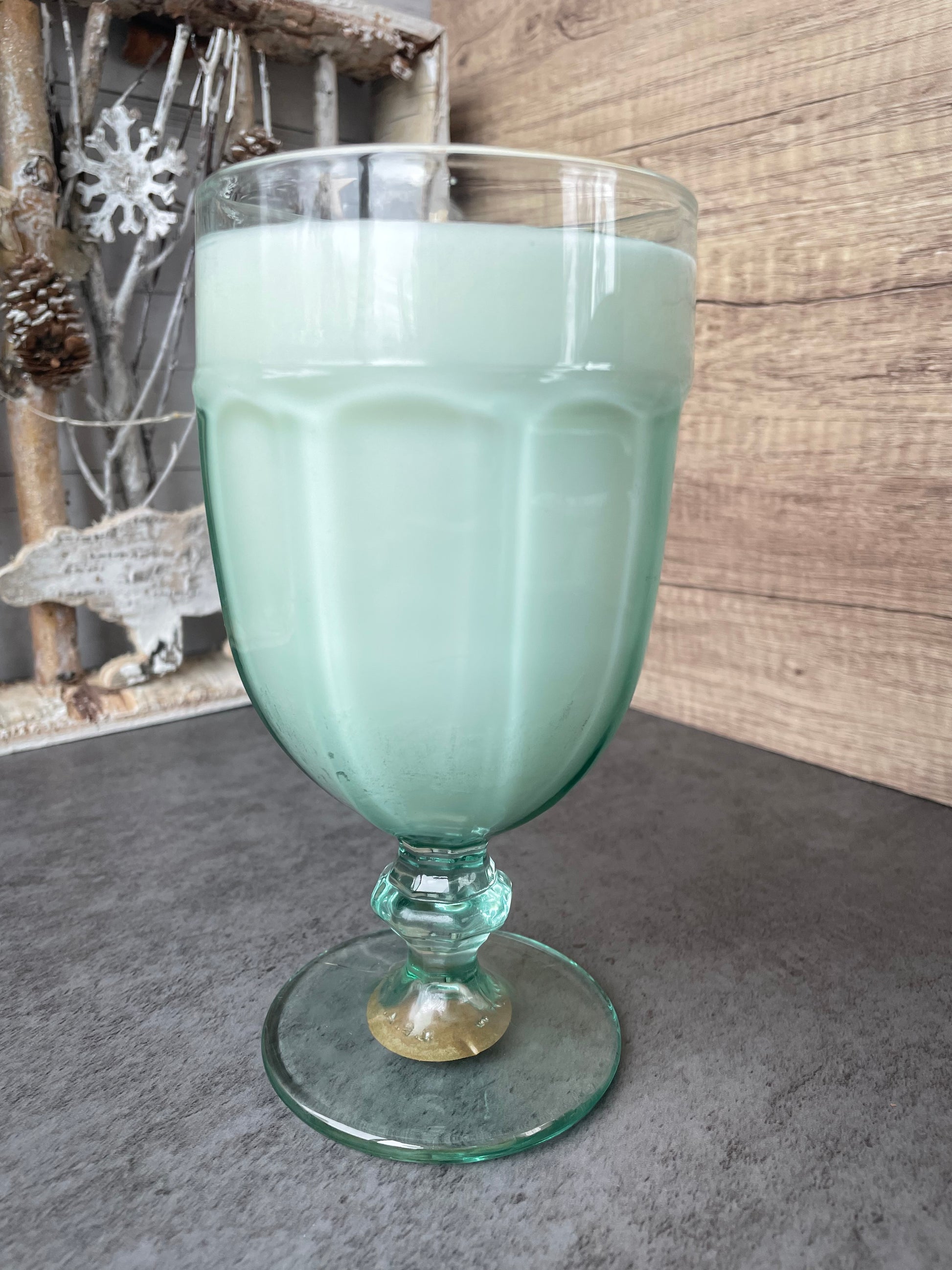 This vintage glass is filled with our lemongrass and Lime scent and is adorned with dried greenery, dried flowers, and a dehydrated lime slice.